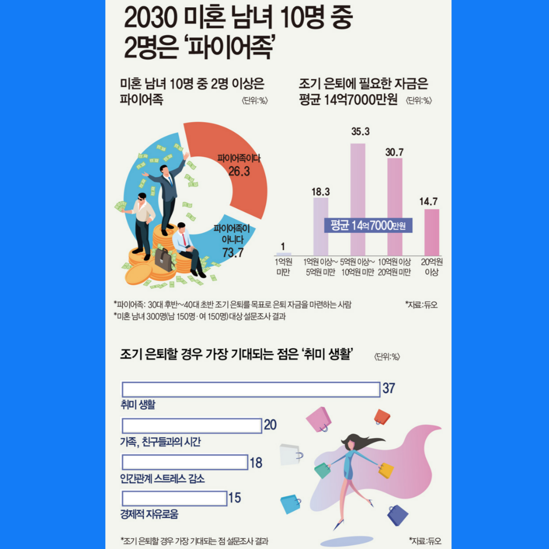 요즘 '파이어족'이라는 단어가 많은 관심을 받고 있는데요! 파이어족이란, 경제적 독립을 이루고 조기 은퇴를 목표로 하는 사람들을 의미합니다. 일반적으로 파이어족이 되기 위해서는 일정한 자산을 모아 노동에서 벗어나고 , 최소한의 생활비로 투자 수익을 활용하며 살아가는 방식을 추구합니다.
